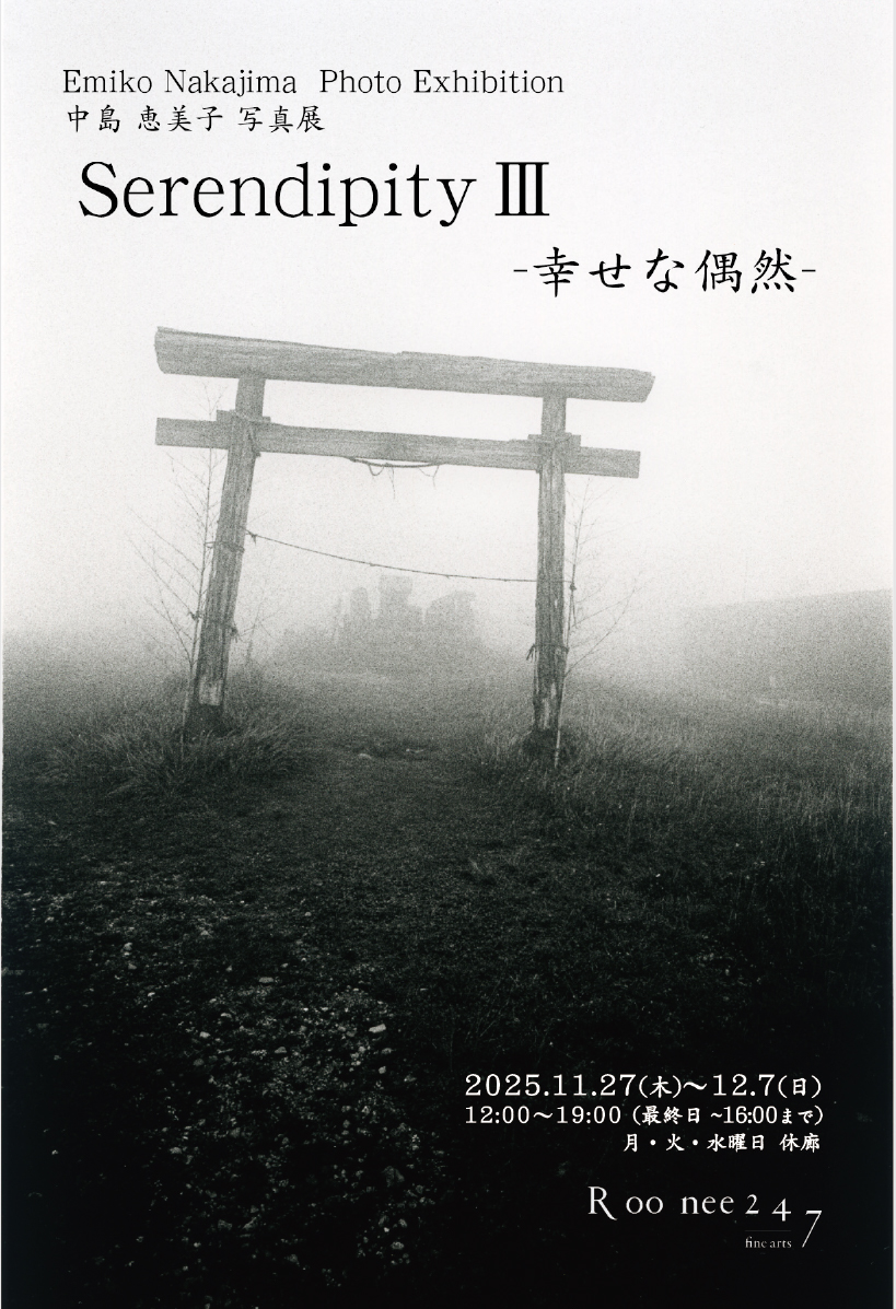 Upcoming アンコールへの道 Room 1+2 会期:2025.11.06 - 2025.11.24 Serendipity Ⅲ –幸せな偶然– Room 1 会期:2025.11.27 - 2025.12.07 「台所の風景」近藤文・松居久美 二人展 Room 2 会期:2025.11.27 - 2025.12.07